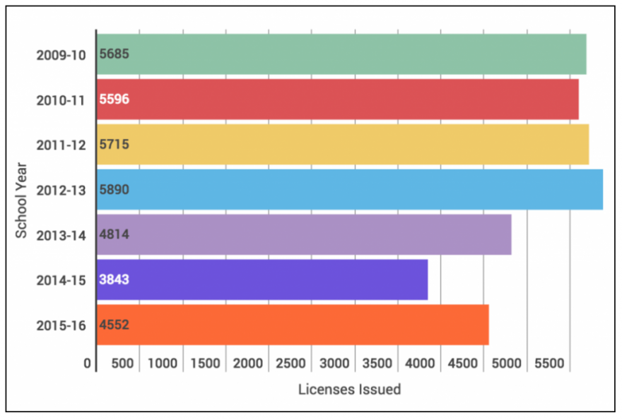Last school year, the Department issued 3,843 licenses to new teachers, the lowest of the last six years. This school year, 4,552 licenses were issued — an 18 percent increase.