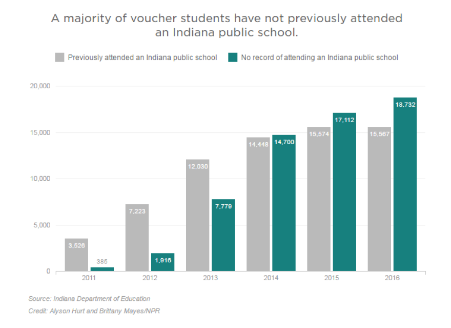 It's also popular, according to a 2016 survey conducted by EdChoice, a group that advocates for vouchers and other forms of school choice. Today, more than 34,000 students are enrolled in Indiana's Choice Scholarship Program — 3 percent of students statewide.