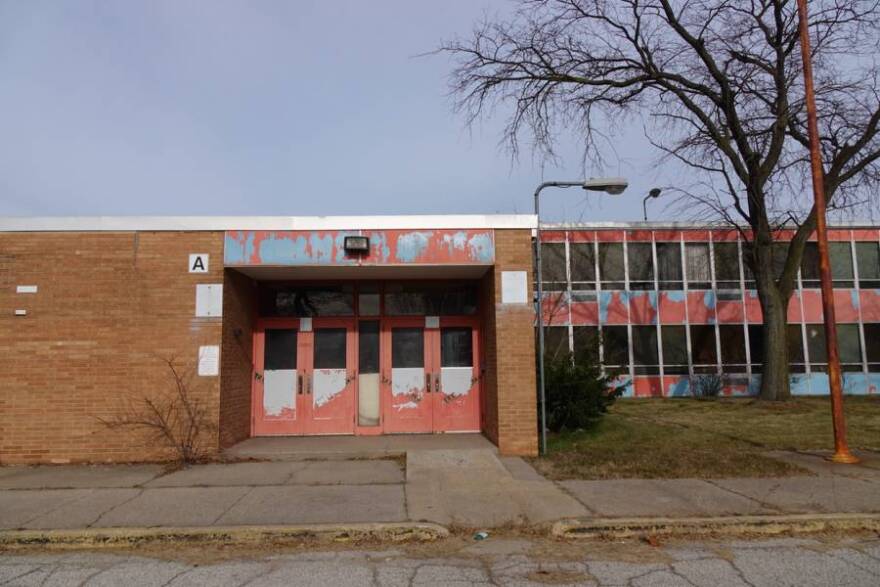 The shuttered David O. Duncan Elementary School is on the same block as the district office for Gary Community School Corporation. It is one of 28 abanonded school buildings in the Gary public schools district. (Eric Weddle/WFYI Public Media)