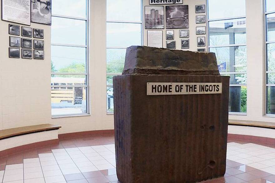 The ingot, a large block of metal used to begin the steelworking process, serves as the inspiration and pride of River Forest Schools, with an ingot sitting near the entrance to the middle/high school. (Jeanie Lindsay/IPB News)