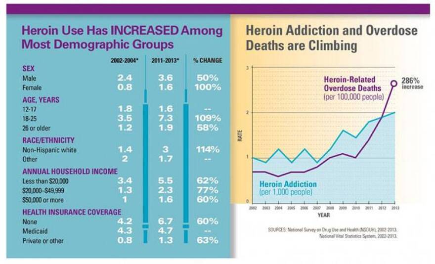 Heroin addiction and overdose deaths have climbed 286 percent in just more than a decade.