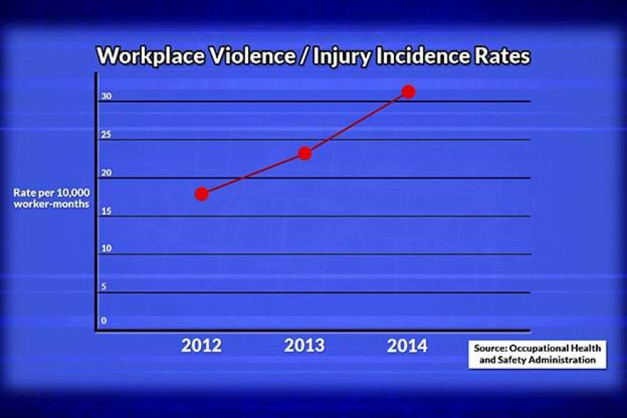 Occupational Safety and Health Administration data shows violence against healthcare providers nearly doubled between 2012 and 2014.