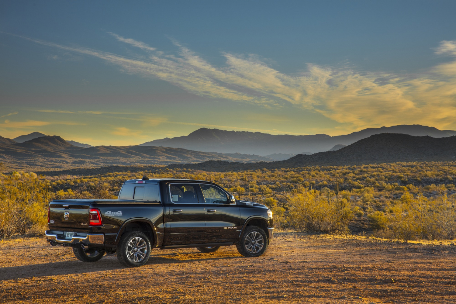 It has that look, with what has become Ram’s trademark streamlined over-the-road semi style. Look close and you’ll see this generation bears a more aerodynamically efficient body, but continues the dropped front fenders that have been Ram hallmarks since 1994. A chrome grille emblazoned with RAM adds class – as do corner-following LED headlamps. Roomy Crew Cabs like ours were stretched 4 inches to provide stretch-out rear legroom. An innovative 60/40 split tailgate can fold down traditionally, or open on side hinges for raking out mulch, or more easily loading gear from the ground. Lockable “RamBox” cubbies in the bedsides hold tools – or beverages.