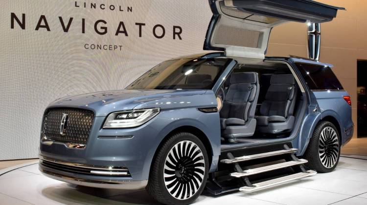 Inspired by yachts, and maybe the Mercedes Gullwing, Navigator Concept mashes Range Rover with Continental for a next-generation luxury SUV. The cabin features middle row lounge chairs, Revel audio, light blue leather, and a built-in wardrobe. Head restraint monitors with Wi-Fi allow music sharing. The 400 horsepower 3.5-liter twin-turbo V6 gets it moving.