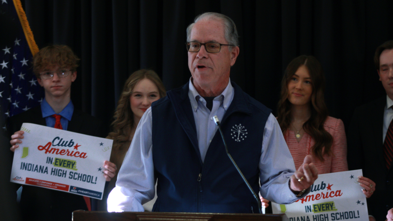 Gov. Mike Braun discussed efforts to bring Turning Point USA clubs to college and high school campuses across Indiana on Thursday, March 12, 2026 at the governor's residence at Meridian and East 46th streets.
