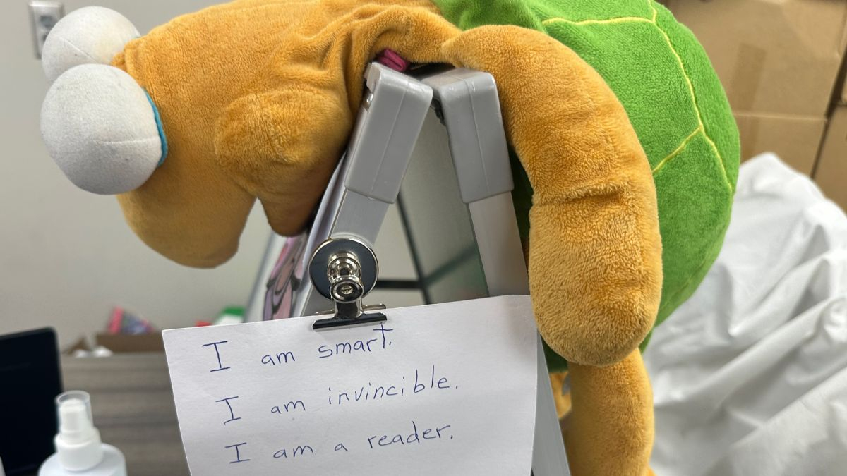 An inspirational note at Pleasant Run Elementary School for students in the Circle City Readers program on Wednesday, May 14, 2025.