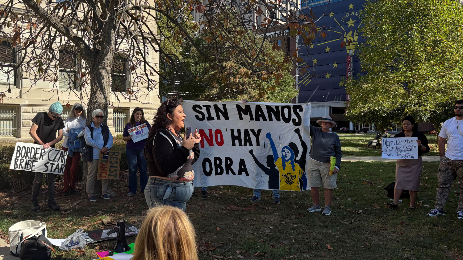 Karla López-Owens, with the Indiana Latino Democratic Caucus, organized the protest. She said the group was there to stand against corrupt politicians that put profit over people.
