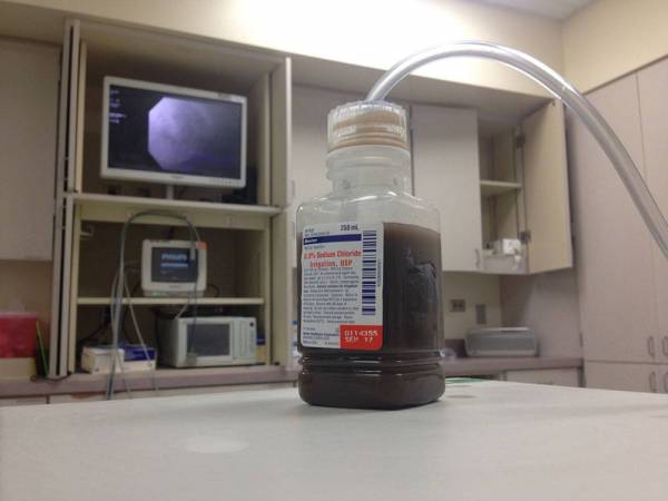 In the hospital operating room, Kidwell lay anesthetized while Fischer inserted a colonoscope and worked her way to the end of Kidwell's colon. Sitting behind her, connected to a pump, was a plastic bottle full of brown goo—the donor stool. Once Fischer reached the end of Kidwell's bowel, the pump was switched on and the bottle steadily emptied. It had been filtered and liquefied, but the poo was still full of helpful bacteria, the kind Kidwell needs to crowd out the harmful C-diff.
