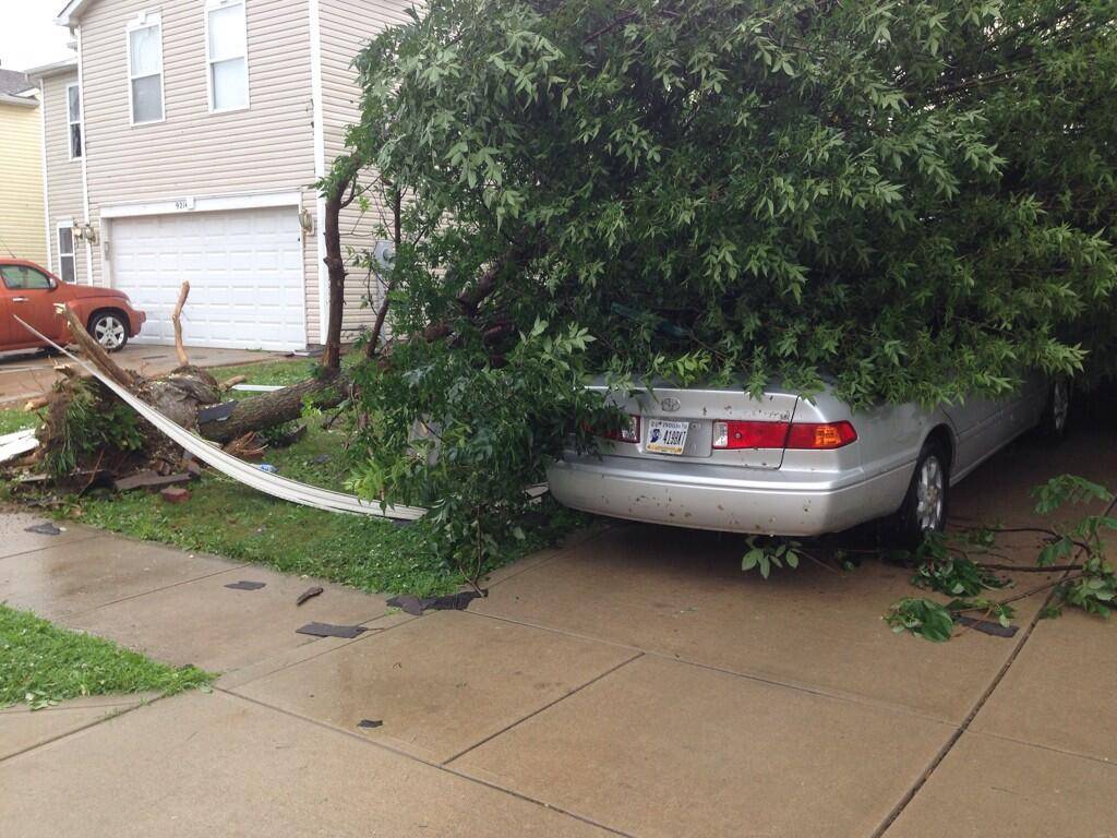 When Harris was able to get to her home, she saw some of its siding had been ripped off and the tree in her front yard was snapped in half.