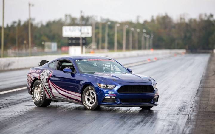 A product of Ford Performance, the 2016 Cobra Jet Mustang is a factory-built drag racer slated for a limited 50-car run. Cobra Jet shares 75 percent of Mustang GT engine parts and employs a four-link rear suspension, Strange Engineering racing brakes roll cage, Aeromotive fuel system, and five-point harness. That and a Whipple supercharger enables 8-second quarter-mile runs. Deliveries begin early 2016 for a $99,990 base price.