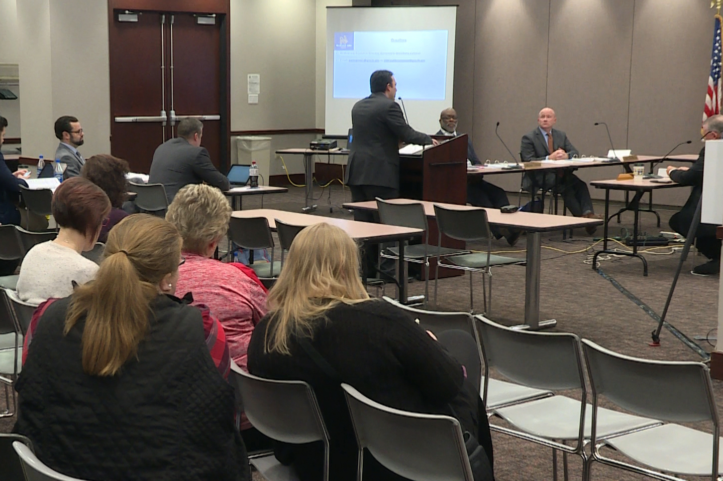 A handful of CTE and FCS teachers listen to state officials discuss the DWD's funding framework that the state board approved at its final meeting of 2019