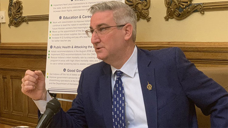 Holcomb had been scheduled to travel to southern Indiana for an awards presentation on Friday, but the governor's office announced Thursday morning without explanation that the event had been postponed for a week.