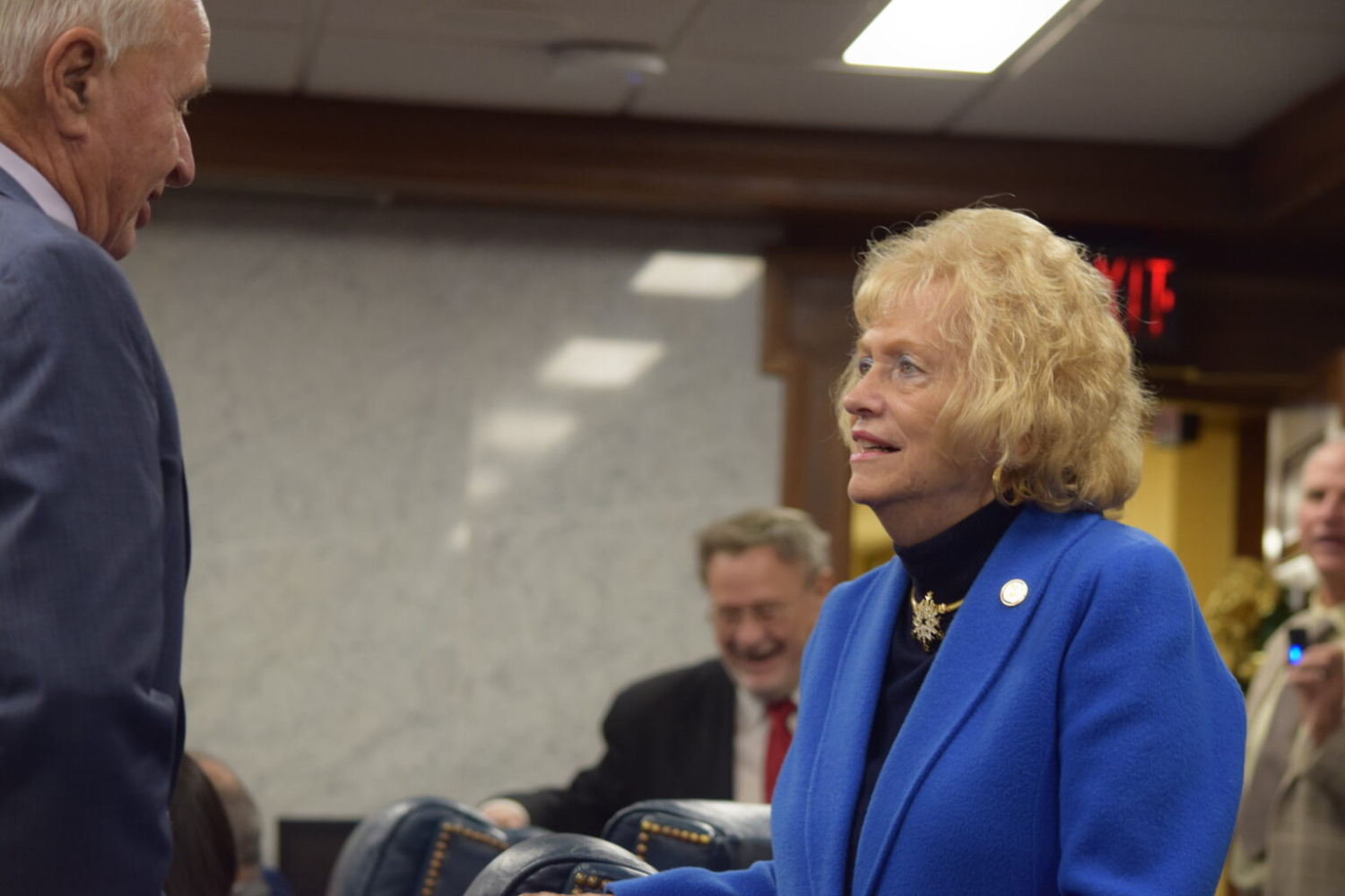 Sen. Vaneta Becker’s legislation would criminalize doxing threats. She is pictured in the Senate chamber on Dec. 10, 2025.