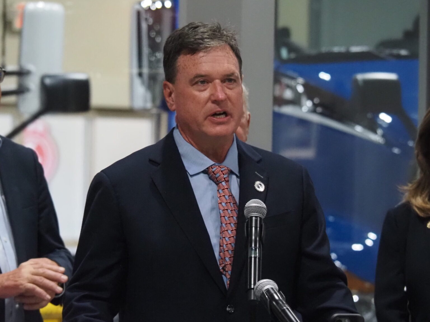 Indiana Attorney General Todd Rokita speaks at an environmental deregulation event at an Indianapolis truck dealership on Tuesday, July 29, 2025.