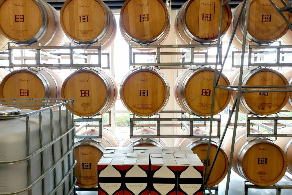 Wine made from a range of Indiana and California grapes ages in custom-made barrels at Two-Ee’s Winery near Huntington.
