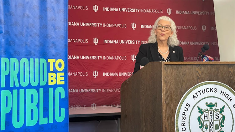 Interim IUPUI Chancellor Carol Anne Murdoch-Kinch spoke at the announcement of the new initiative at Crispus Attucks High School on Wednesday, Sept. 27, 2013.