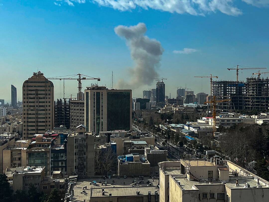 The wave of airstrikes began after sunrise in Iran, with huge explosions ringing out in the capital Tehran. Videos showed large plumes of thick smoke.