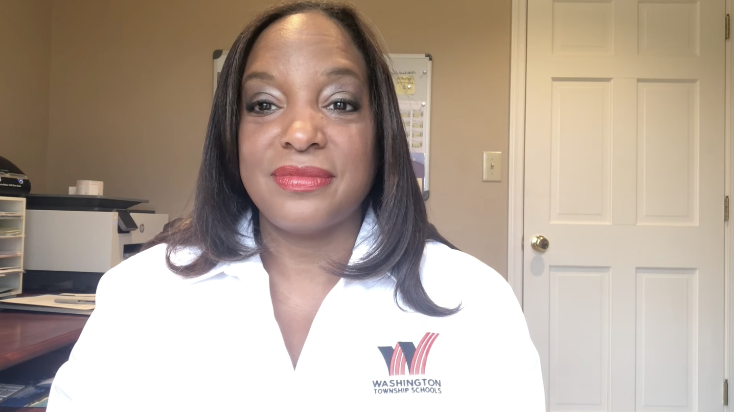 Washington Township Schools Superintendent Nikki Woodson speaks during a video update about COVID-19 school closures in April 2020.