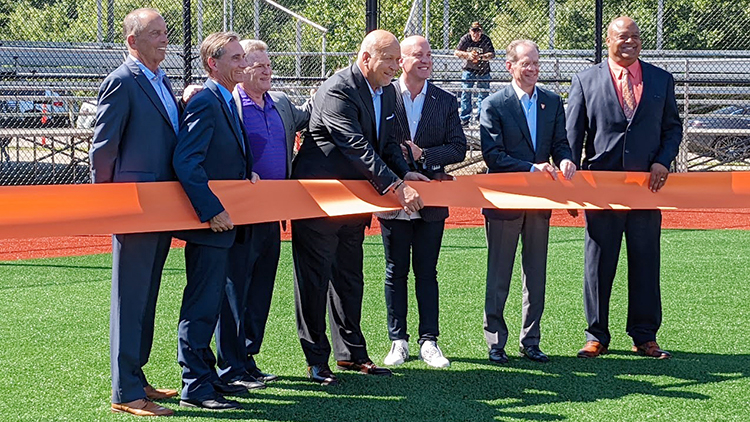 Through the foundation, Gainbridge helped sponsor the renovations, along with the city of Muncie and Ball State University. Improvements include new synthetic infield turf, new scoreboard, field lights, and a warning track.