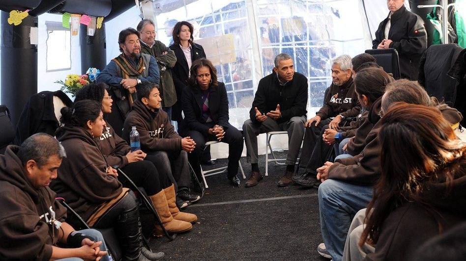 Obama stopped by a tent on the National Mall where some activists have been abstaining from food for the past 18 days. He was accompanied by first lady Michelle Obama.