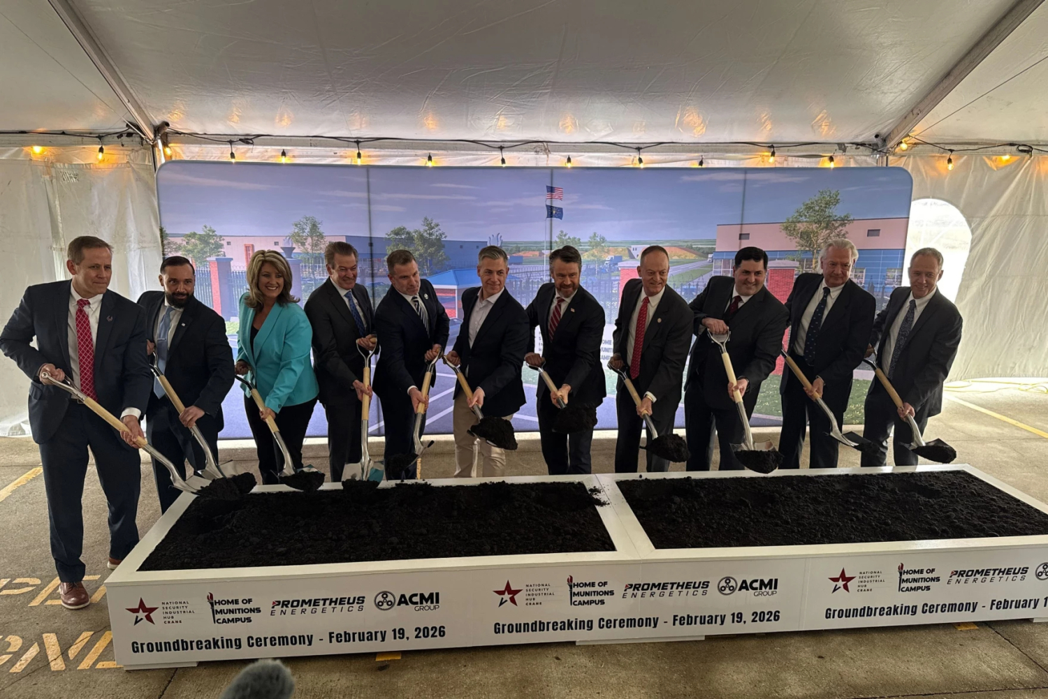 Senators Todd Young and Jim Banks, as well as U.S. Rep. Mark Messmer and a slew of defense contractors break ground on the new industrial hub.