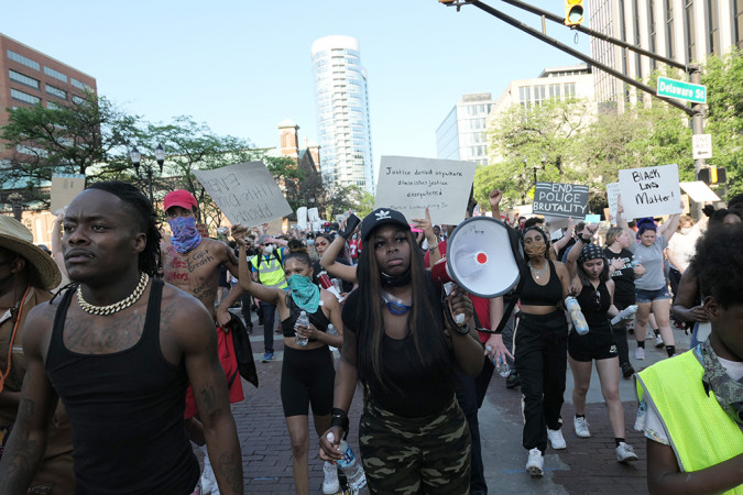 Protesters have congregated at Monument Circle after marching through downtown Indianapolis. With Marion County's 8 p.m. curfew approaching, organizers invite participants to leave if they want, but many also say the march will continue. They ask "agitators" to leave and encourage protesters to have phones ready in case there are confrontations with police.