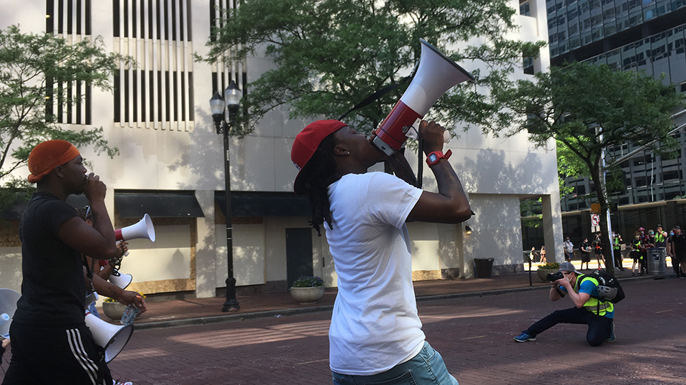 Akilyah Carpenter, 23, had never protested until Saturday. On the Statehouse lawn, she held a small white megaphone and demanded justice and understanding. She says one day, this moment will be written in history books.