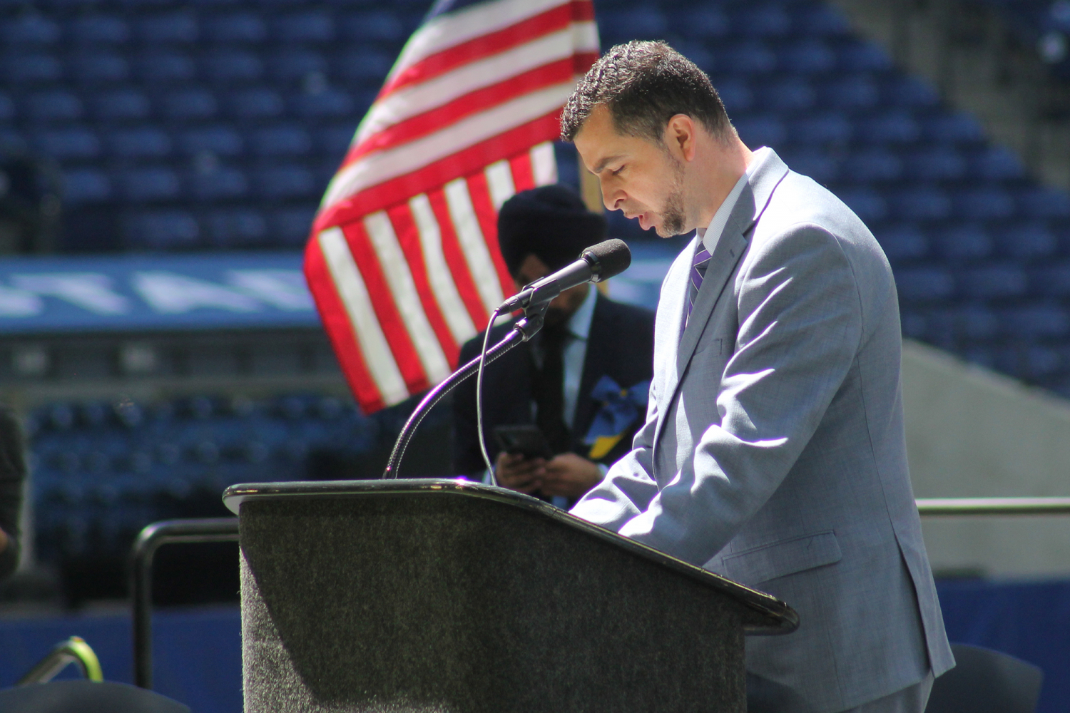 Sen. Fady Qaddoura (D-Indianapolis) spoke at the memorial on Saturday, May 1, calling directly for gun reform and investment in mental health.