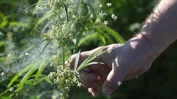 Industrial hemp pollinates prolifically. A slight tap can release a thick cloud of pollen from the plant.