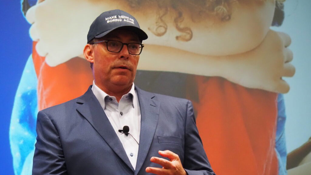 Mitch Roob, secretary of the Family and Social Services Administration, discusses the agency’s finances, including Medicaid costs, and upcoming challenges on Aug. 6, 2025, in Indianapolis.