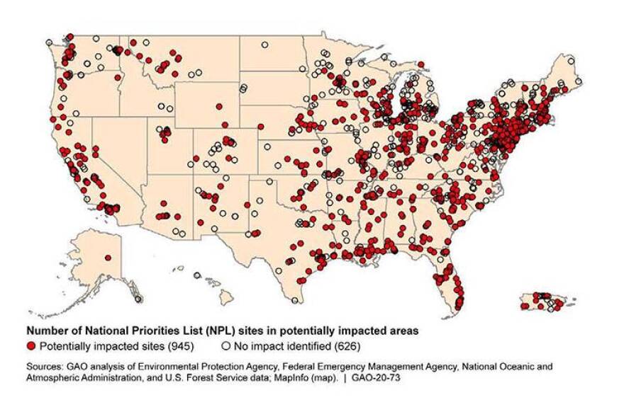 The GAO report shows that more than half of all Superfund sites across the country will be put at risk due to climate change — from sea level rise, storm surges, wildfires, and flooding. You can see the ones in Indiana through this interactive map.