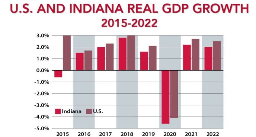 “The Indiana economy is about 6.7 percent beneath where we thought it would be right now. That is a stunning decline from expected levels," Hicks said. "I think we’ll catch back up to where we were in 2019 by the end of this year ‘til the spring of 2022. Not where we should be, right, but where we were before COVID.”