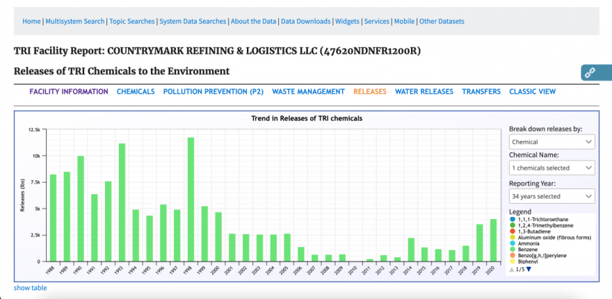 CountryMark Refining and Logistics in Mount Vernon had benzene emissions last year that exceeded the level at which the federal government requires companies to take action.