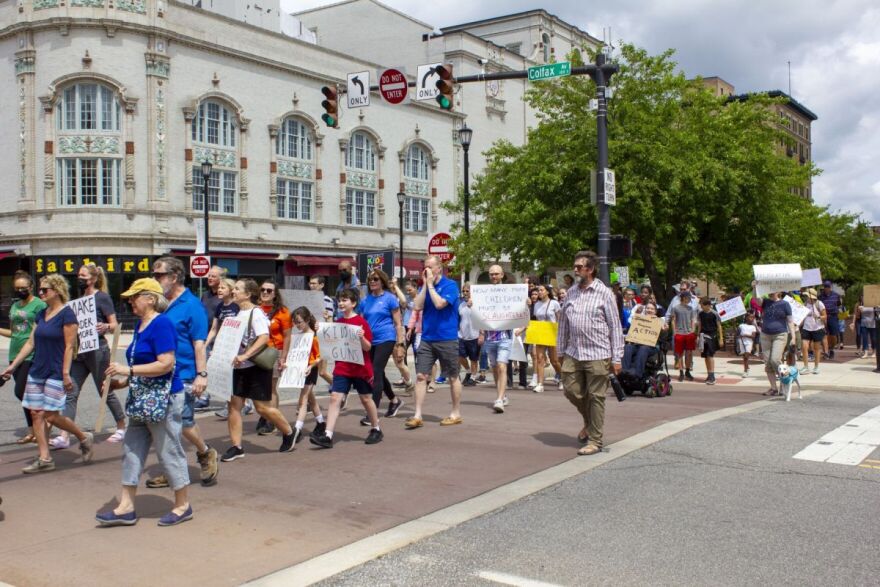 A few hundred people gathered Saturday afternoon at Tarkington Park in Indianapolis. Protesters were invited to make signs, write letters to Gov. Eric Holcomb and register to vote.