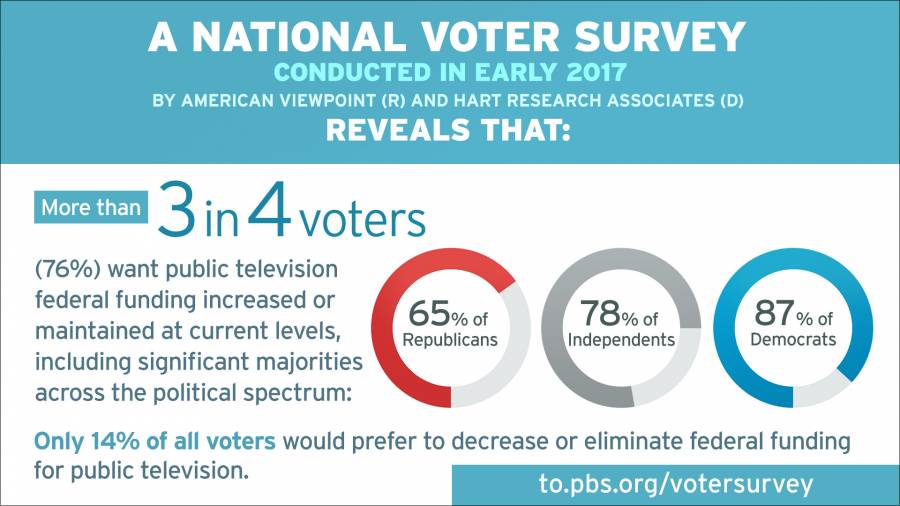 Lloyd is referring to two new national surveys — one by Rasmussen Reports (subscribers) and another conducted jointly by leading Republican and Democratic researchers for PBS — that reveal voters across the political spectrum overwhelmingly oppose eliminating federal funding for public television.
